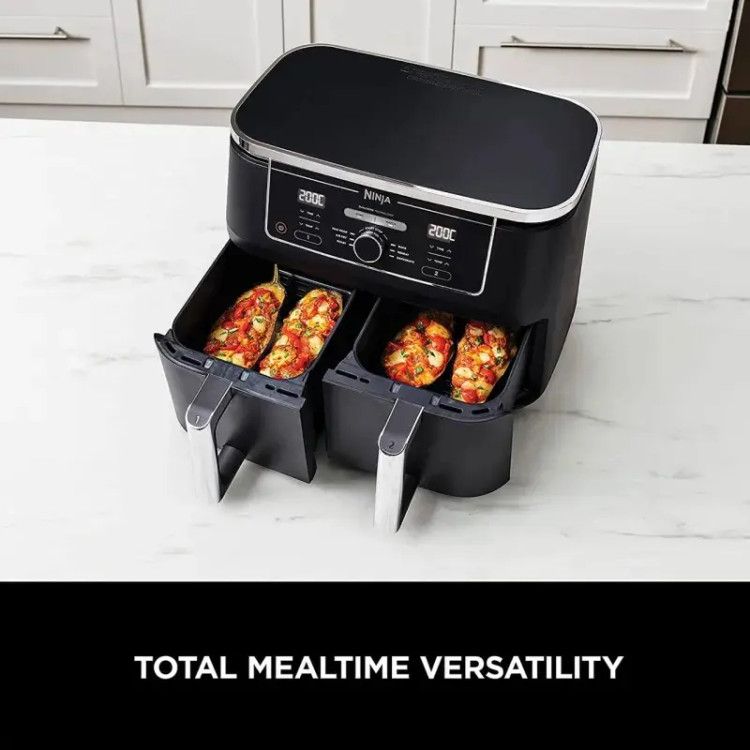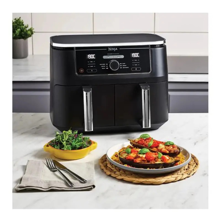 مشخصات سایر توضیحات برنامه های پخت : Max Crisp , Air Fry , Air Roast , Bake , Reheat , Dehydrate ( کاملا ترد ، سرخ کن ، کباب کردن ، پختن (کیک و شیرینی و ...) ، گرم کردن مجدد و خشک کن میوه و سبزیجات ) \u002F فناوری منحصر به فرد DUAL ZONE ™ نینجا به شما امکان می دهد آشپزی خود را با برنامه Match or Sync همگام سازی کنید. \u002F ظرفیت ۹.۵ لیتر دارای ۲ سبد پخت مستقل ۴.۷۵ لیتری \u002F تمام اقلام عاری از BPA \u002F محدوده دما ۴۰ درجه سانتیگراد تا ۲۴۰ درجه سانتیگراد \u002F ابعاد ۴۱.۵x۲۷x۳۲.۵ سانتیمتر وزن ۸۸۰۰ گرم طول سیم ۸۵ سانتی متر ظرفیت ۹.۵ لیتر توضیحات صفحه نمایش LED حداکثر توان مصرفی ۲۴۷۰ ویژگیهای نظافتی شستوشوی اقلام جانبی در ماشین ظرفشویی